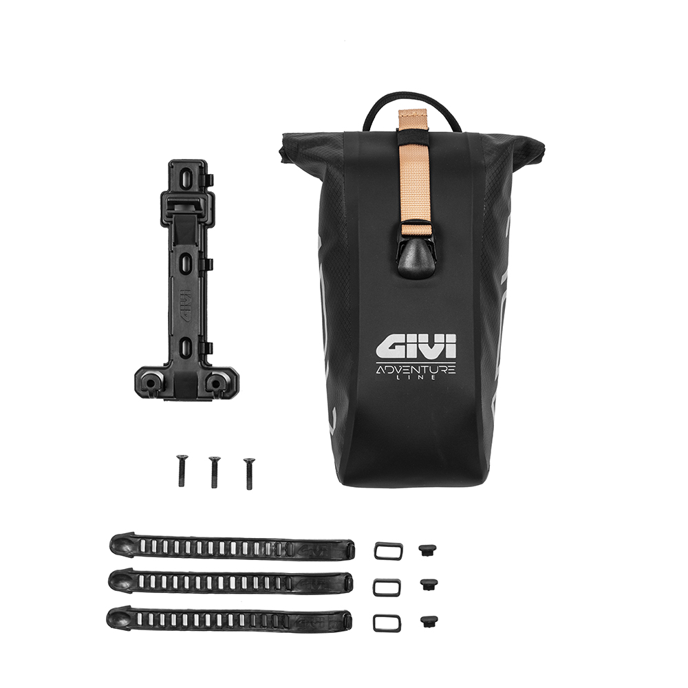 Ideal for bikepacking and cycle tourism, CARRIER features the new GIVI CONTATTO/Fork Fitting System, which allows the bag to be attached or released in a single motion.