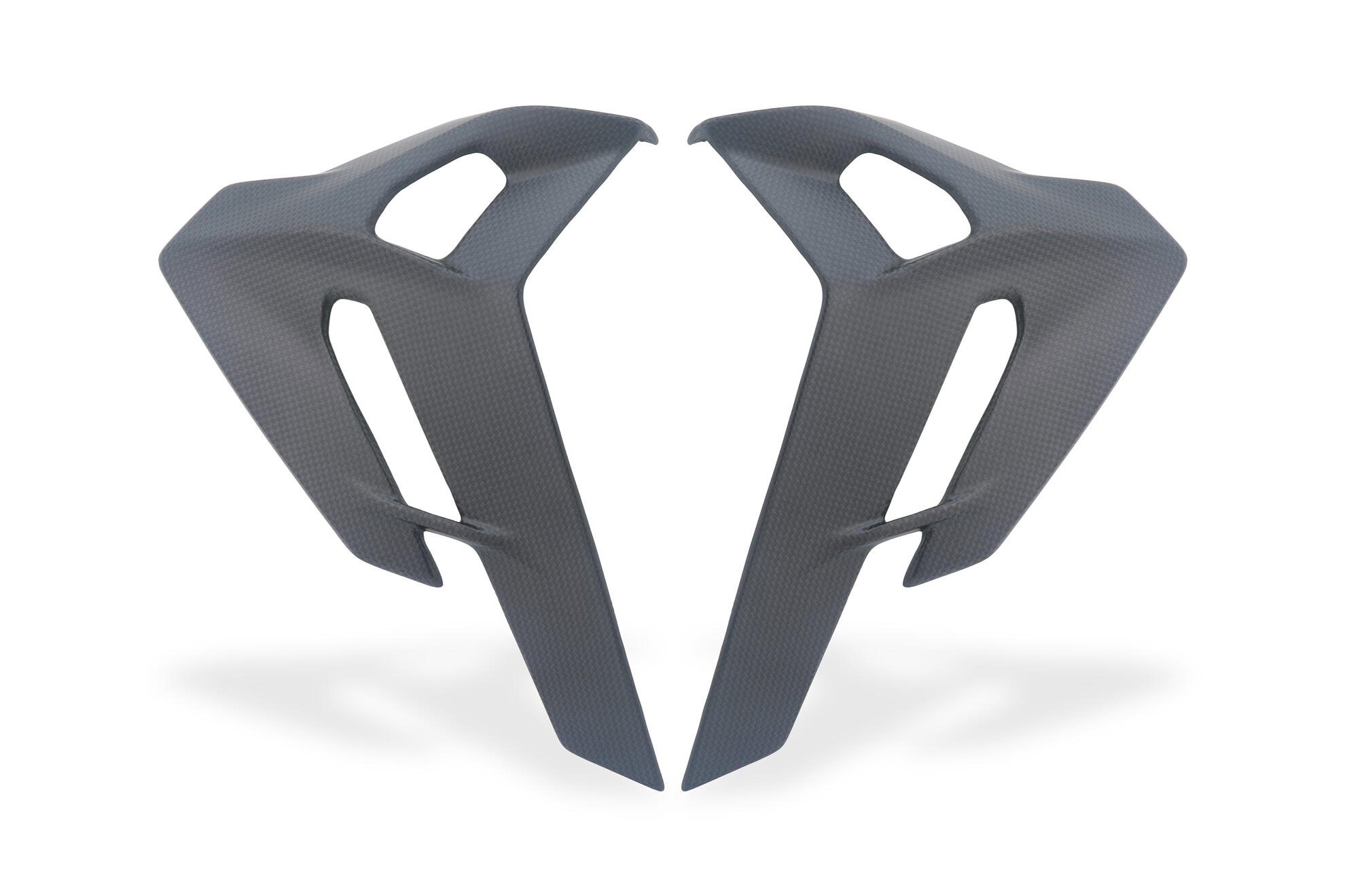 Set of rear side panels (left and right) manufactured from high-strength carbon fiber, specifically designed for the new 2025 Streetfighter V2. These components enhance the aggressive aesthetic of the tail section while providing lightweight structural protection in areas highly exposed to heat and debris.